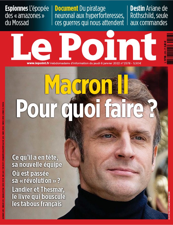 Avec Le Point, restez l'esprit en alerte ! Indépendance, rigueur, conviction et ouverture, quatre mots clés pour définir ce grand hebdomadaire d'actualité. Le Point vous donne tous les repères nécessaires à travers ses grands dossiers, ses enquêtes fouillées, ses analyses pertinentes, pour vous aider à vous forger votre propre opinion. Véritable outil de référence, Le Point est toujours attendu avec impatience par ses lecteurs avant chaque week-end.