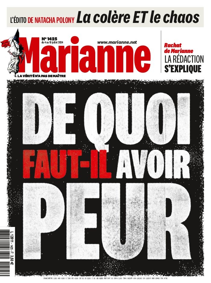 Cette liberté de ton en fait l'hebdomadaire privilégié de ceux qui veulent une information véritablement libre et engagée. Marianne, c'est aussi la vie. S'indigner est aussi important que clamer son admiration, plaisanter est aussi nécessaire qu'approfondir les sujets. Marianne, c'est également une diversité de tons et d'analyses parce que l'on est vraiment singulier qu'en étant pluriel. Marianne, c'est enfin une maison commune et chez nous, vous avez votre place, toute votre place.